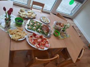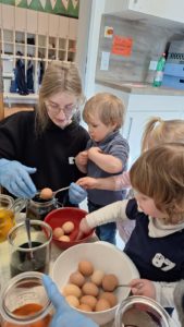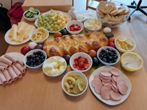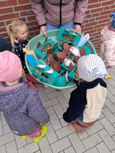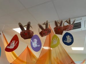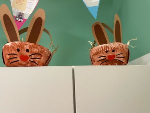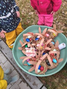 Ostern war wieder eine ganz besondere und spannende Zeit im Zwergenland. Wir haben dem Osterhasen geschrieben, Körbchen gebastelt, Lieder und Spiele gespielt und viele tolle Osterangebote in den Gruppen durchgeführt. Den Osterhaben haben wir auch unterstützt und mit den Kindern 120 Eier in Ostereier verwandelt. Am letzten Tag gab es eine spannende Osterrallye mit Osterkörbchensuche. Gestärkt haben sich die Kinder bei einem tollen Osterfrühstück in den Gruppen. Dies wurde von den Eltern zubereitet – „Vielen Dank dafür!“.